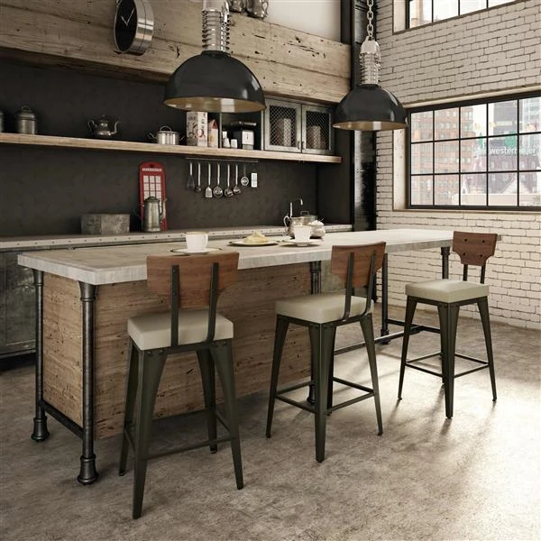 This stool by Amisco® epitomizes contemporary style, with exquisite attention to detail and a less-is-more design. This product features a wooden back and mat finish. Ideal for kitchen islands. Limited ten-year warranty. Assembly required.