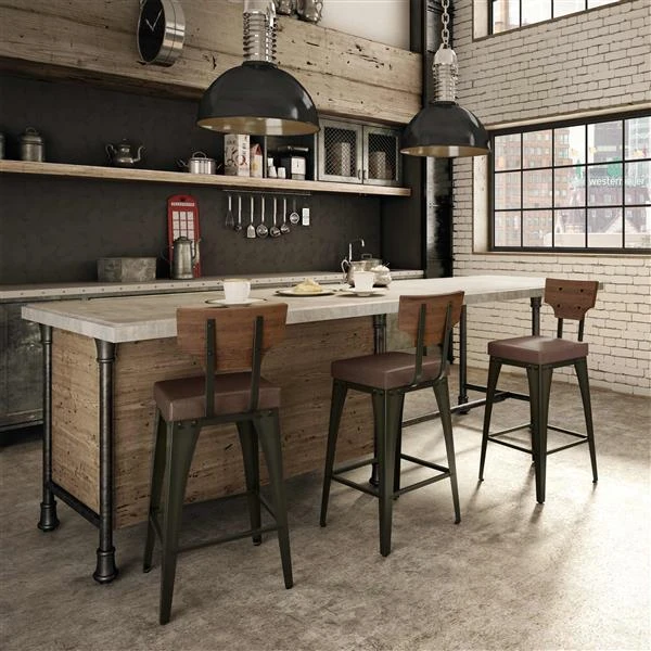 This stool by Amisco® epitomizes contemporary style, with exquisite attention to detail and a less-is-more design. This product features a wooden back and mat finish. Ideal for kitchen islands. Limited ten-year warranty. Assembly required.