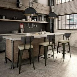 Amisco Rally 26.88-in Counter Stool – Medium Brown Faux Leather – Brown Distressed Wood – Gun Metal