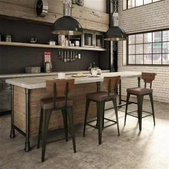 Amisco Rally 30.88-in Bar Stool – Brown Faux Leather – Brown Distressed Wood – Brown Metal